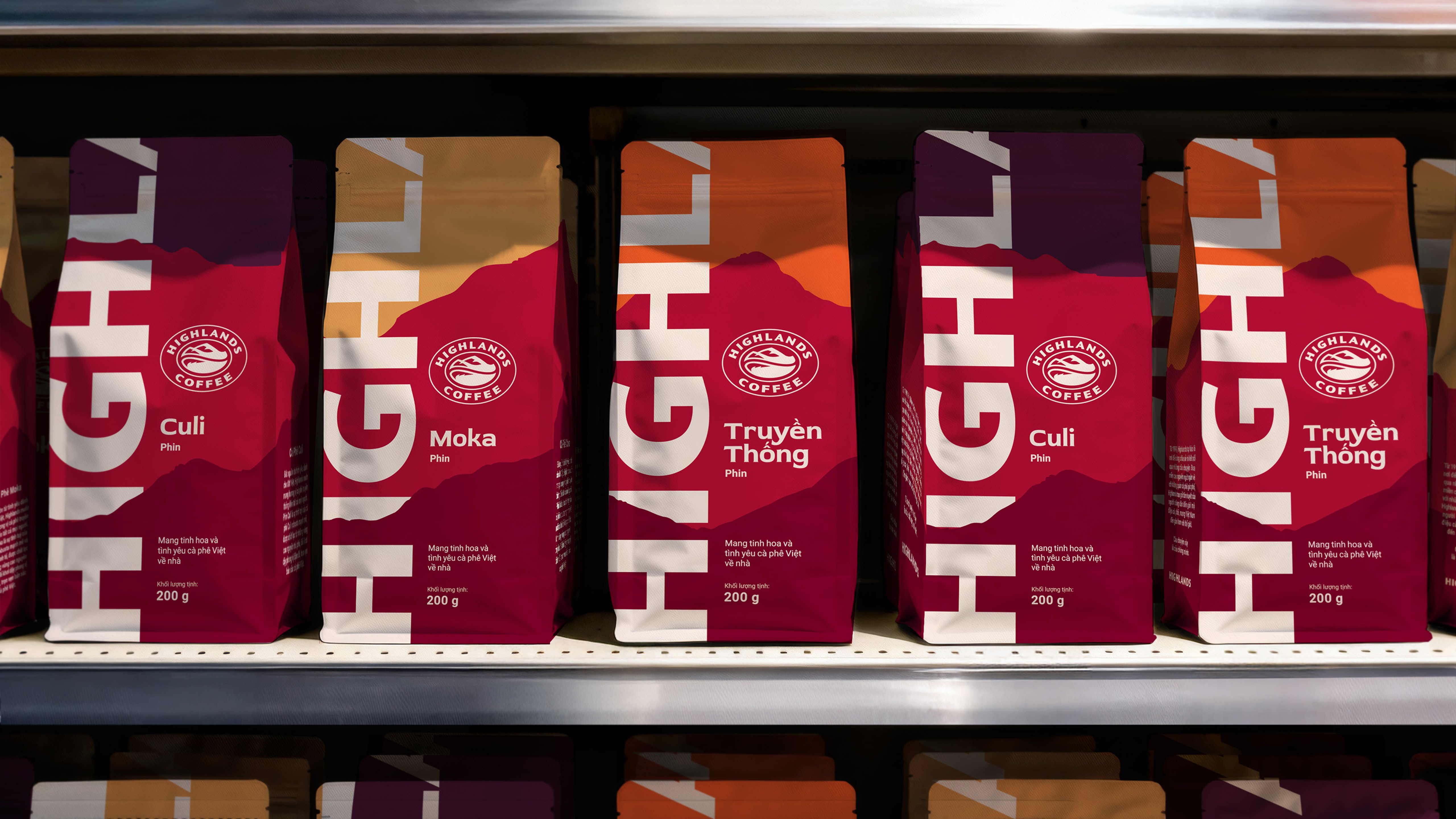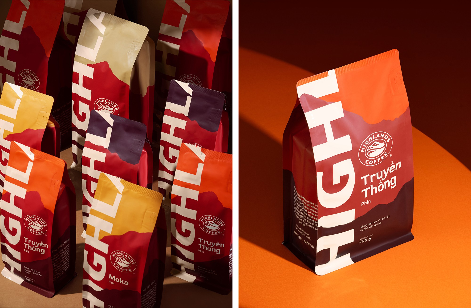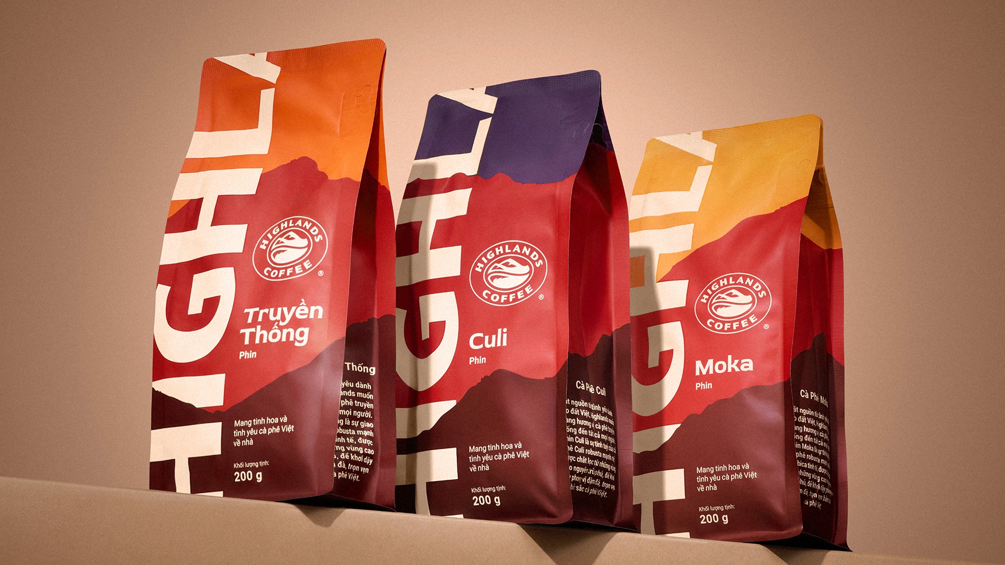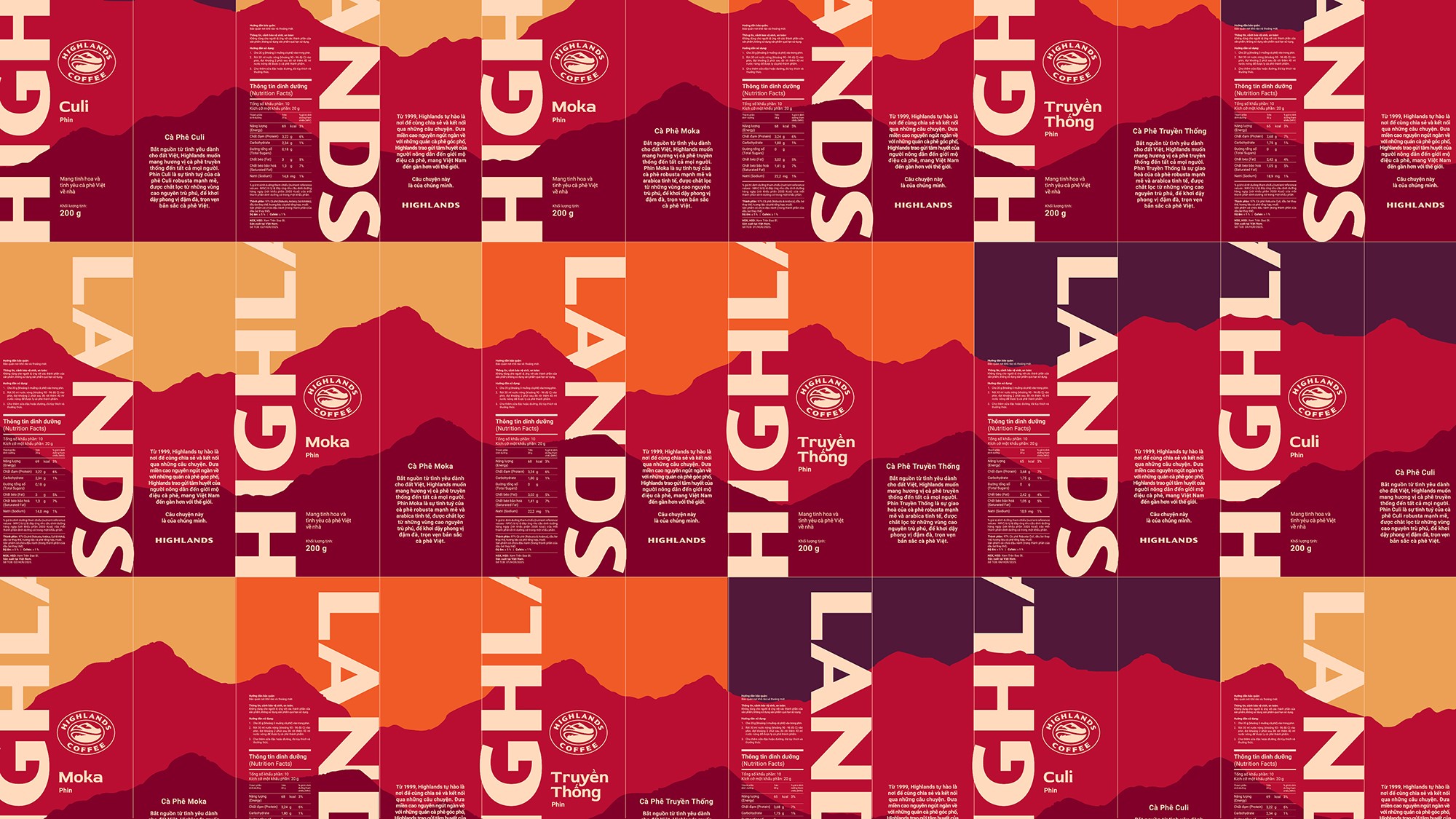Highlands Coffee’s new identity and packaging mark a significant step forward for Vietnamese coffee at scale. Built from a renewed sense of pride in its place of origin, the design reintroduces the brand with bolder forms, stronger contrast, and a more grounded visual language—anchoring a new era for Highlands’ expanding CPG business.
