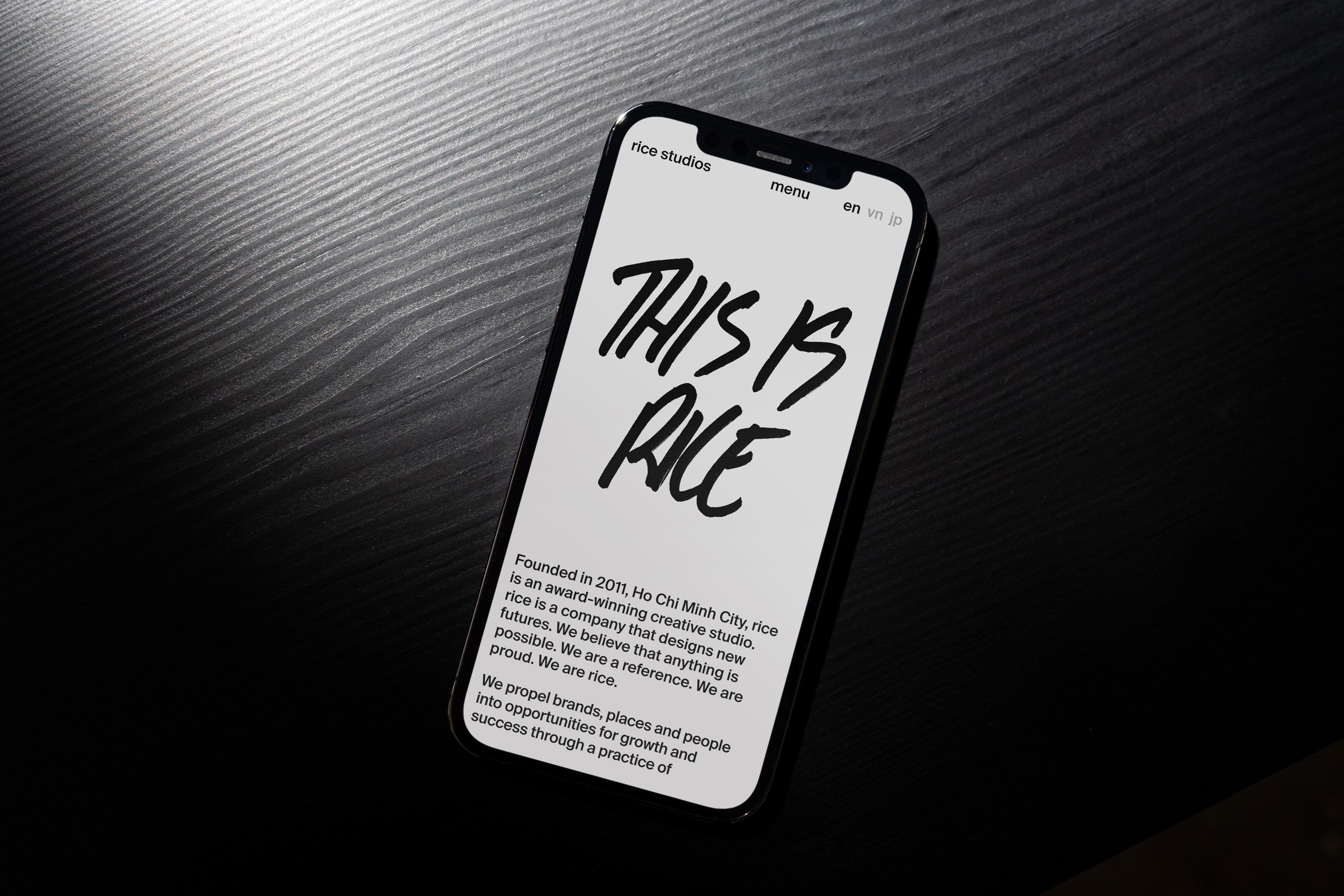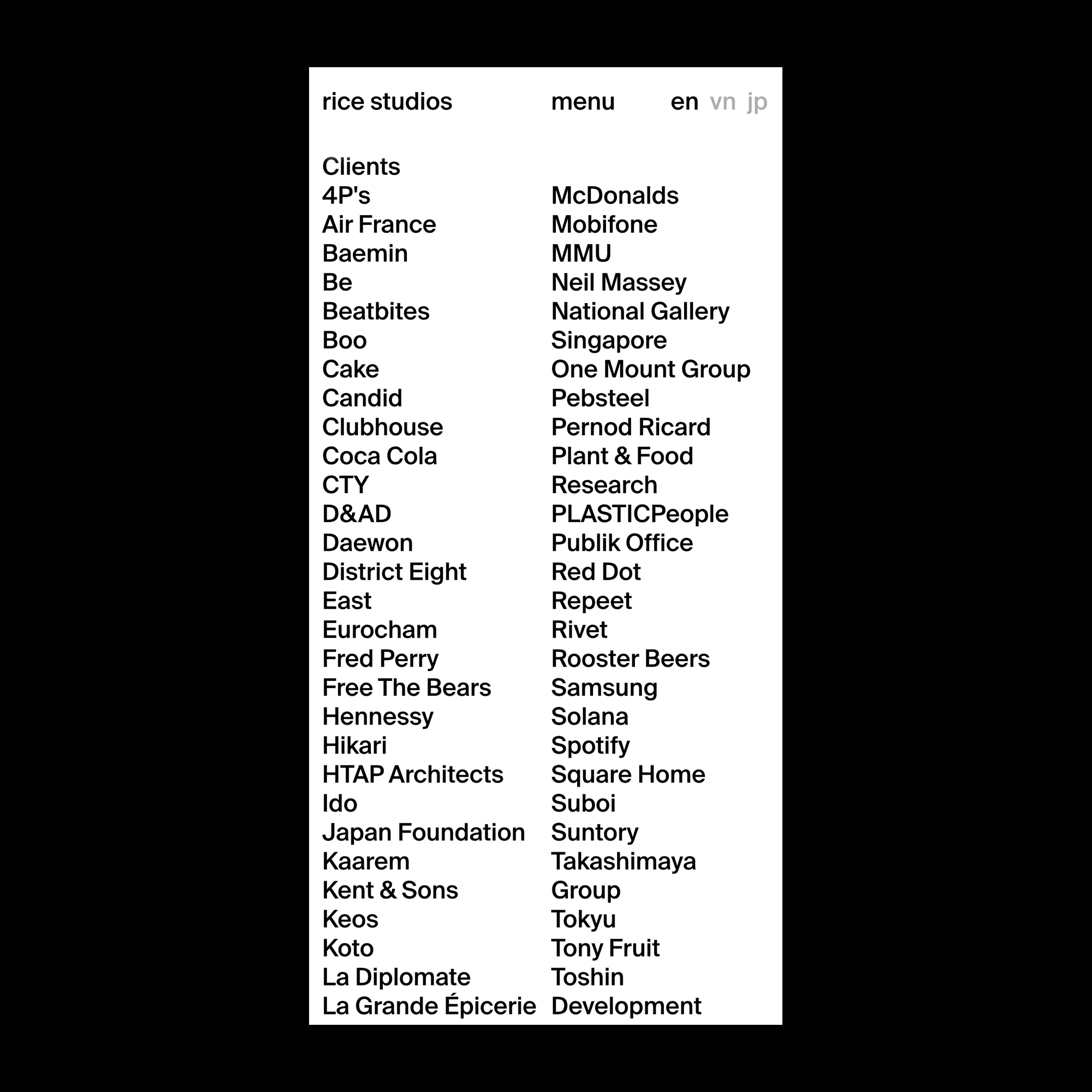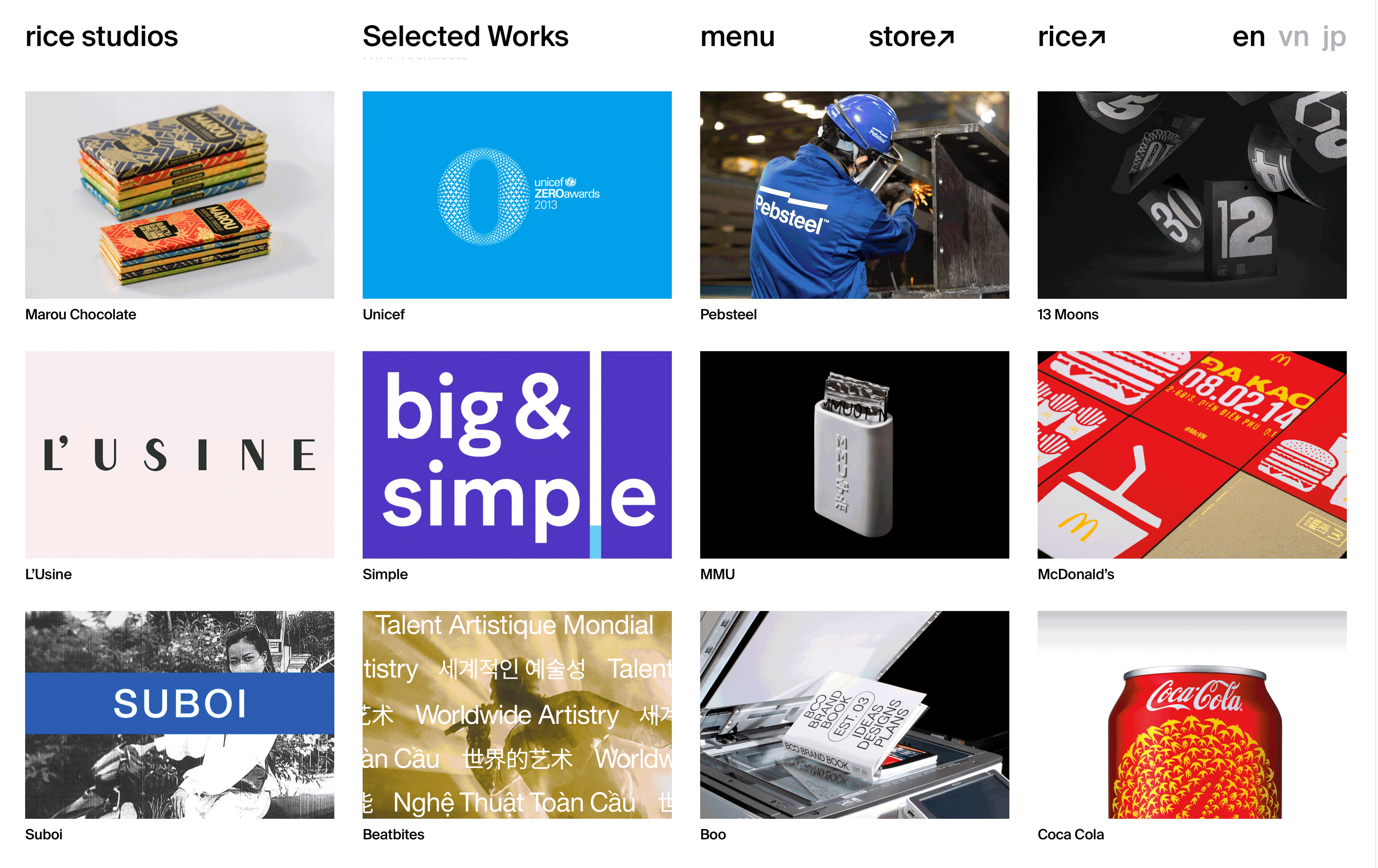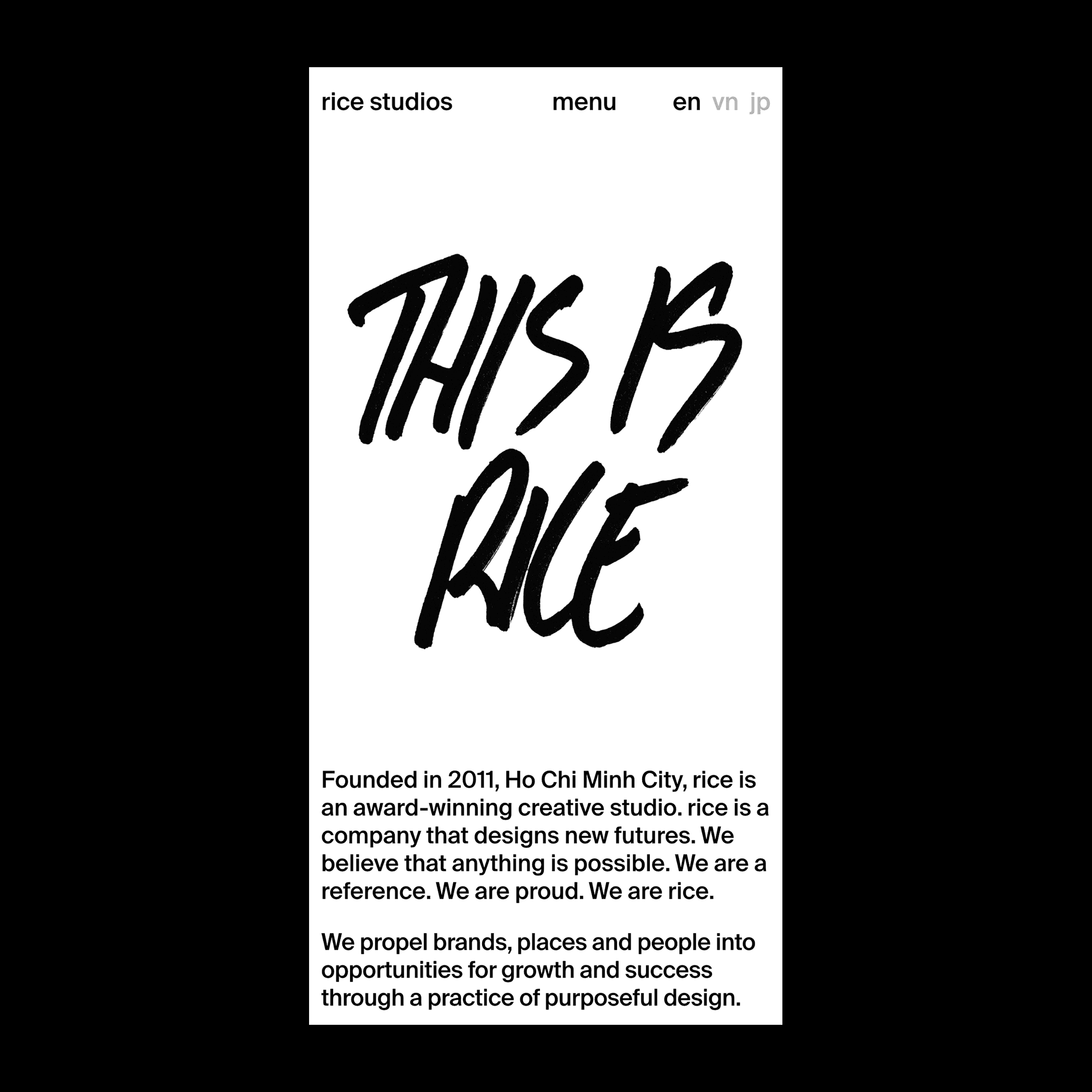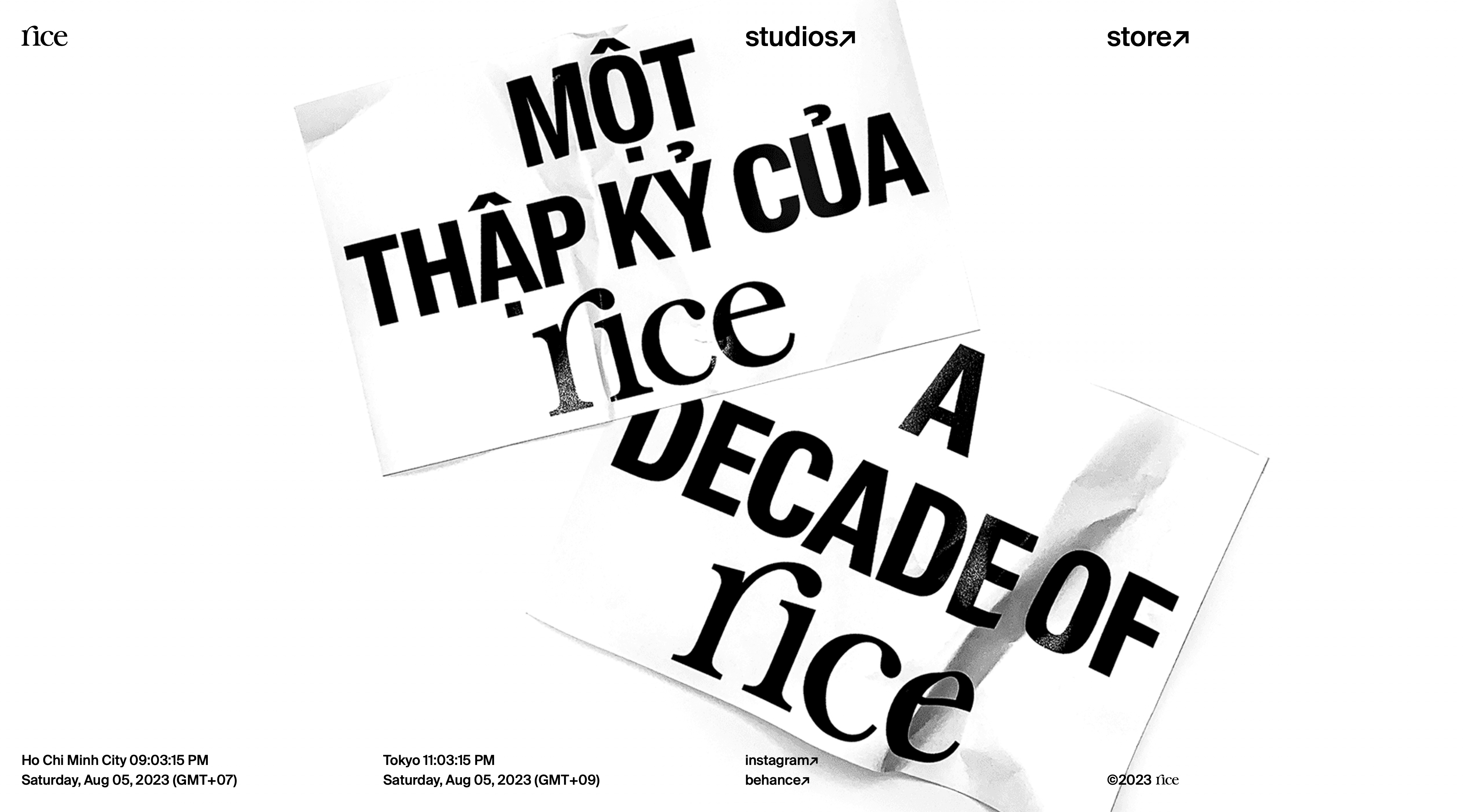 Redesign Rice Studios' website with a fresh look using Neo-Brutalist style. Organize content neatly and use clear text-based ideas. Create a balanced single-page design inspired by international aesthetics.